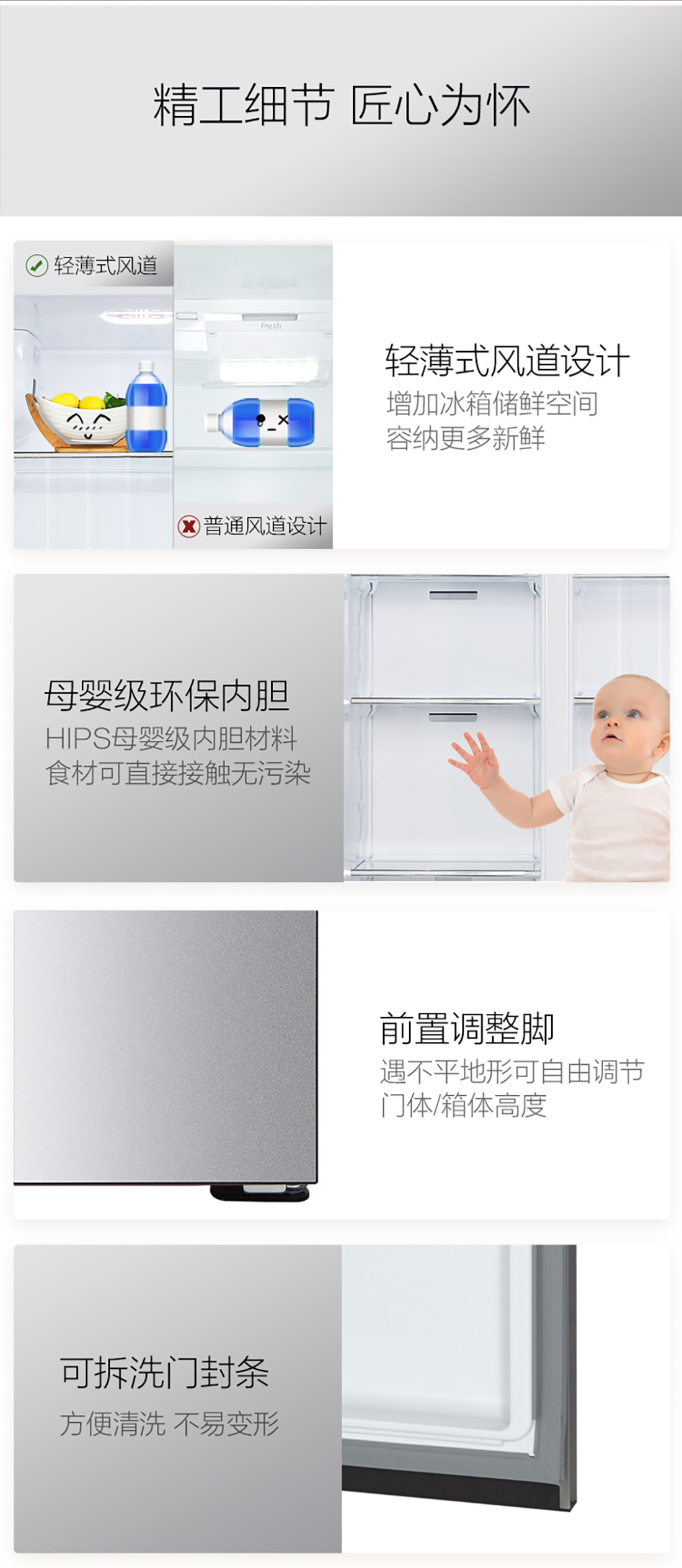 搭載-33℃深凍鎖鮮科技,肉汁飽滿更長(zhǎng)久。采用離子長(zhǎng)效抗菌凈味,抗菌率高達(dá)99.9%。3D沐風(fēng),風(fēng)冷養(yǎng)鮮,無(wú)需鑿霜。
