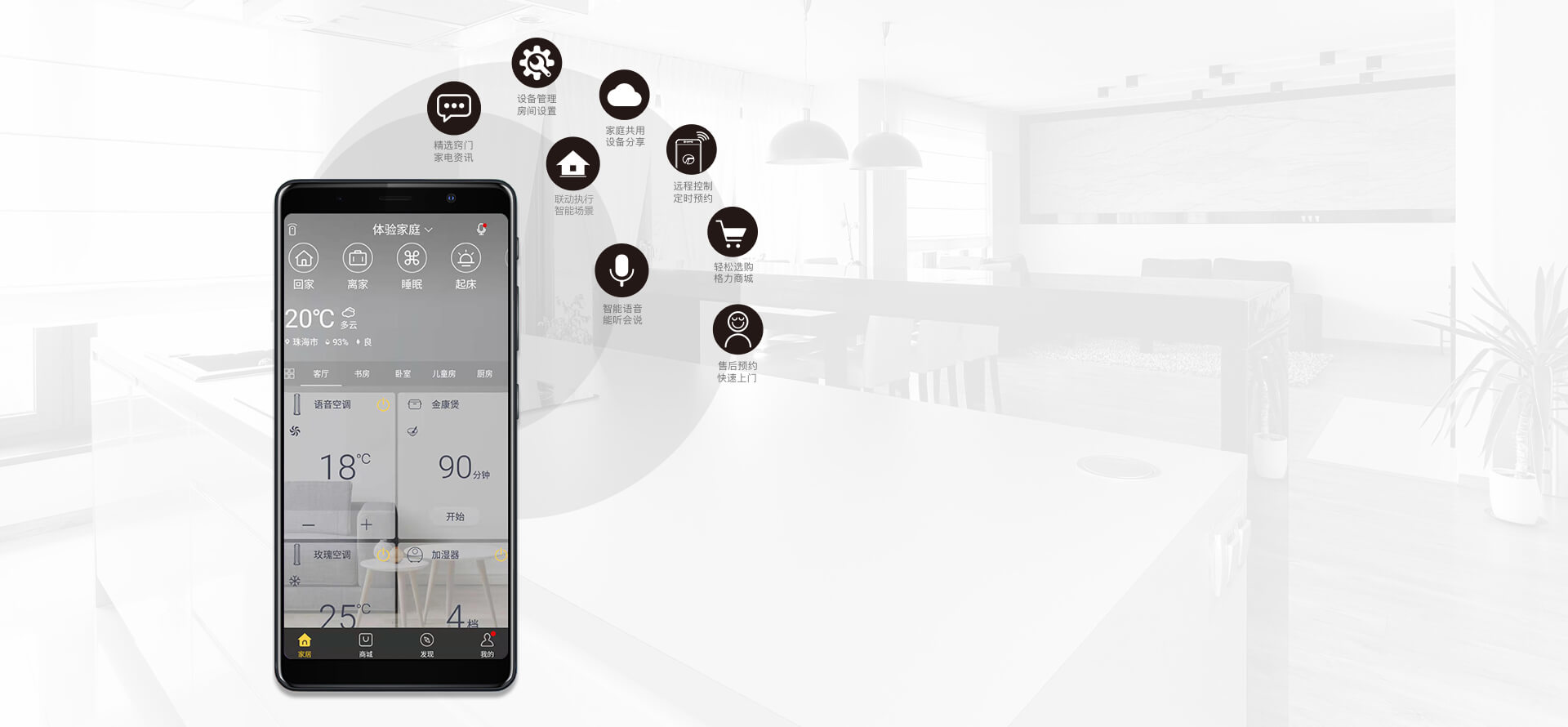 遠(yuǎn)程控制,語(yǔ)音控制,遙控器控制,定時(shí)開(kāi)關(guān).搭配格力智能家電,定制專(zhuān)屬場(chǎng)景聯(lián)動(dòng)