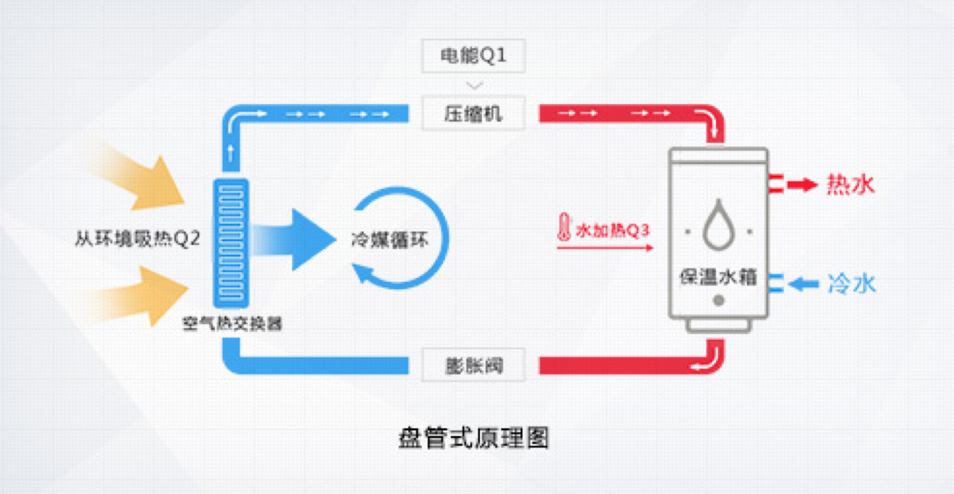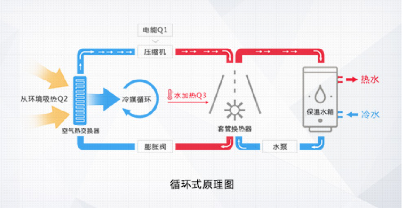 格力空氣能熱水器,傳承空調(diào)核心科技,以消耗一部分電能為補(bǔ)償,通過熱力循環(huán),從周圍環(huán)境的低品位能源(空氣源)取得熱量,通過壓縮機(jī)將其輸送至冷凝器,釋放給水箱內(nèi)的水將其加熱。它的工作原理與空調(diào)制熱時(shí)的原理相類似,只是空調(diào)是 從自然環(huán)境中吸取熱量,供給室內(nèi)空氣,而空氣能熱水器是以這部分熱量加熱生活熱水,其能效比是電熱水器的4倍,是燃?xì)鉄崴鞯?倍,是太陽能熱水器的近2倍,是一種新型的高效、節(jié)能、環(huán)保的熱水器產(chǎn)品。一度電的付出,4倍熱量的收獲!